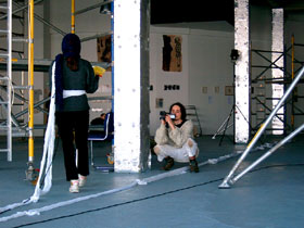 The Royal Danish Academy of Fine Arts warmly welcomes transitstation to our old, historical ceremonial hall, the Festsalen, albeit perhaps too historical for the current purpose thus reactionary nevertheless . It is inherent in the nature of transitstation to adapt to local settings. However this year the challenge may prove to be even greater. The ceremonial hall of The Royal Danish Academy is situated right at the heart of a listed building from the 1670s, and has previously served as a banqueting hall, theatre and opera venue. Over the past 250 years it has been - with varying degrees of success, but in its own accommodating fashion - the setting for professional and festive occasions alike; prize awards, exhibitions, Royal visits, concerts with classical and experimental music, international conferences, and protest meetings. Due to the considerable height of the ceiling and the neo-classicist exterior, complete with a Parthenon frieze and coffered ceiling, it might appear as a dance partner who is a little stiff-legged, and weighed down by convention and the old traditions of the Academy. The hall thus gives the impression of being formed by artistic ideals from times gone by - when ideas of art as a room in motion and audience participation had not come into existence yet. However as with other exhibition events, transitstation will complete this setting with all the history involved. Viewed from a far-reaching historical perspective, the spaciousness and events have been the distinctive marks of the hall, just as performative art forms and events have played an important role here from the beginning. Music, theatre, lectures, meetings, conferences, and graduation ceremonies refer to situations, which each in their own way change over time, include physical performers and have a particular relation to the audience. With the inclusion of scaffolding, transitstation's visual and spatial hallmark will underline the fact that with this event it is a question of something alien, something from without never intended for this place - for nowhere in fact - because it both exists as a process and is under construction. For that reason, it is bound to become a collision in which histories meet and views on art are negotiated.